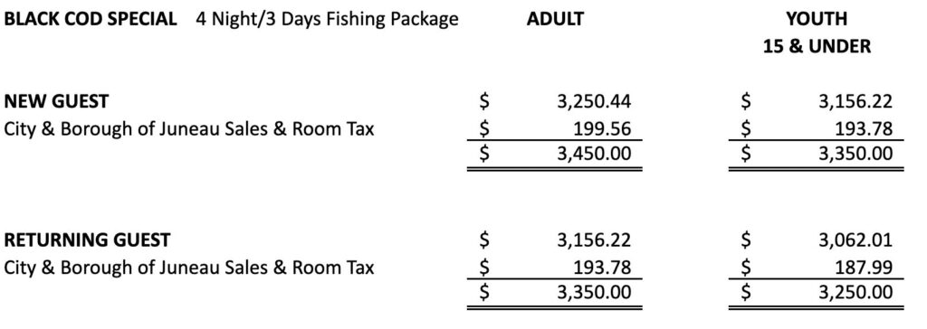– Round-trip transportation via boat from Juneau to lodge
